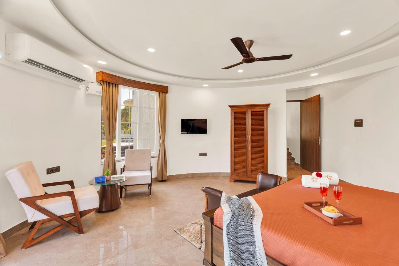 Set in Zarvar, SaffronStays The White Castle offers accommodation with private pool, free WiFi and free private parking for guests who drive. The property features garden views and is 32 km from Pandavlena Caves and 41 km from Sundarnarayan Temple. On clear days, guests can head outside to enjoy the villas outdoor fireplace or simply kick back and relax.